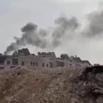 Binanın içinden yükselen alevler sürerken, bombardımanın durdurulması için acil çağrılar yapılıyor. Onlarca sivilin hayatının ciddi şekilde tehlikede olduğu bildirildi.
